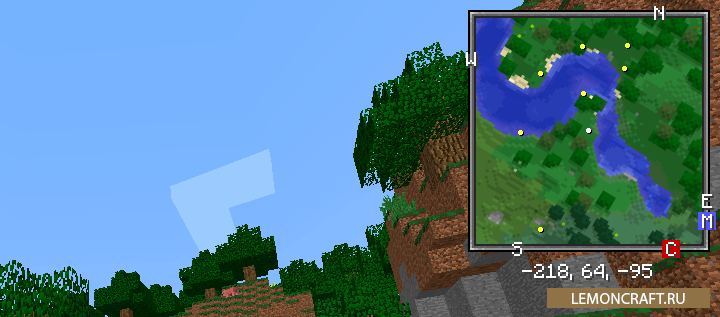 Мод Xaero's Minimap добавляет в игру приятную мини-карту. Это одна из самых лучших мини-карт, которые можно увидеть в игре майнкрафт. Автор мода постарался добавить все нужные элементы. На мини-карте будут отображаться мобы, игроки, пещеры, биом в котором вы находитесь. Каждый элемент имеет свой цвет, что позволяет быстро соориентироваться, где что находится.